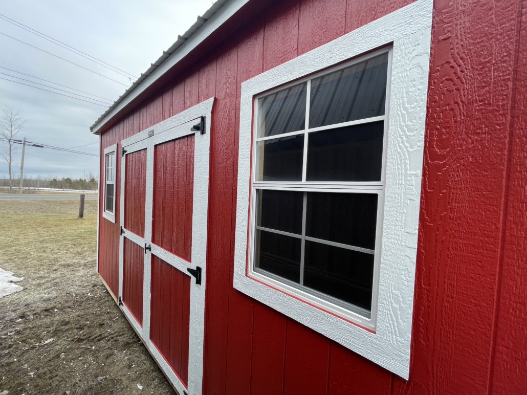 The Side Utility is a popular model with a 70″ wide double door on the side, along with 2-2×3 windows for extra lighting and ventilation. This layout is popular with gardeners.