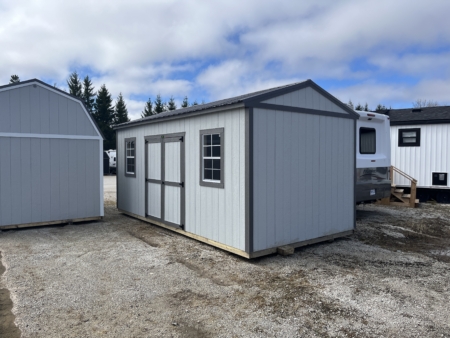 The Side Utility is a popular model with a 70″ wide double door on the side, along with 2-2×3 windows for extra lighting and ventilation. This layout is popular with gardeners.